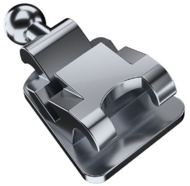 metal self-ligating brackets (no elastic ties; easier adjustments).